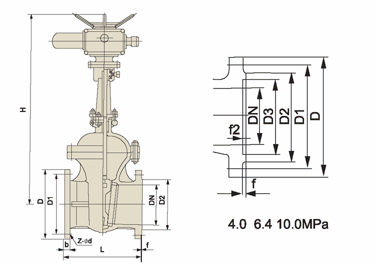 高中压法兰连接的闸阀适用于公称压力PN1.6~16.0MPa,工作温度≤-29℃~550℃的石油、化工、水力、火力电站各种系统的管路上,切断或接通管路介质。适用介质为:水、油品、蒸气、及酸、碱、氨、尿素、含硫 天然气等。操作方式有:手动、齿轮传动、电动、气动等。